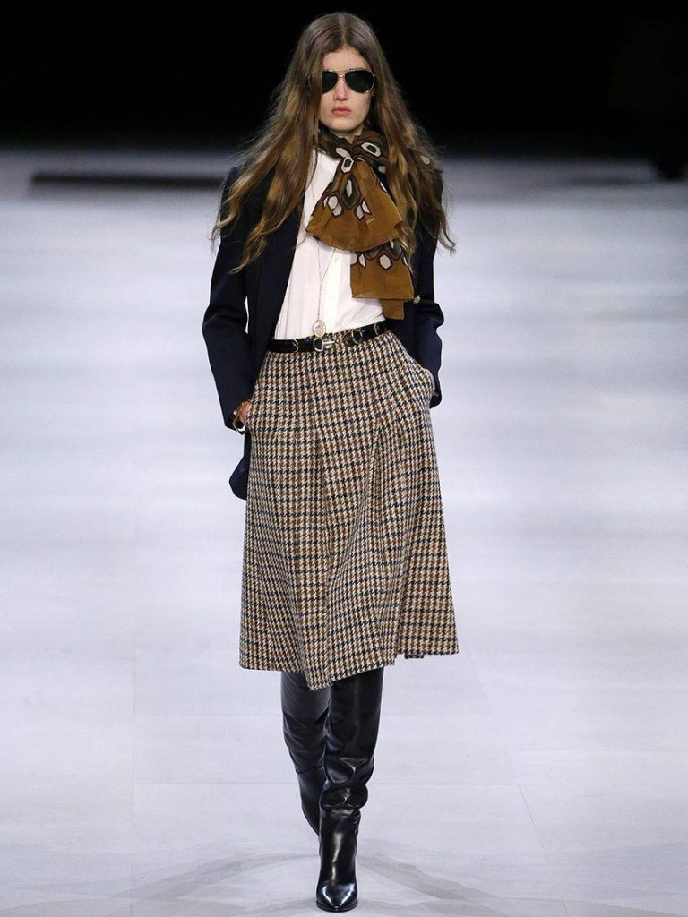 Aperçu chez Celine, Dior et Fendi, les silhouettes structurées sont à l’honneur. Tailleur pantalon cintré ou jupe fluide midi, toute la panoplie du dressing BCBG renaît de ses cendres. S’il y a une règle à respecter, cest de ne pas tomber dans le total look et misez plus sur des pièces phares comme : le foulard en soie a nouer autour du cou pour casser le look monochrome ou encore le serre-tête.
