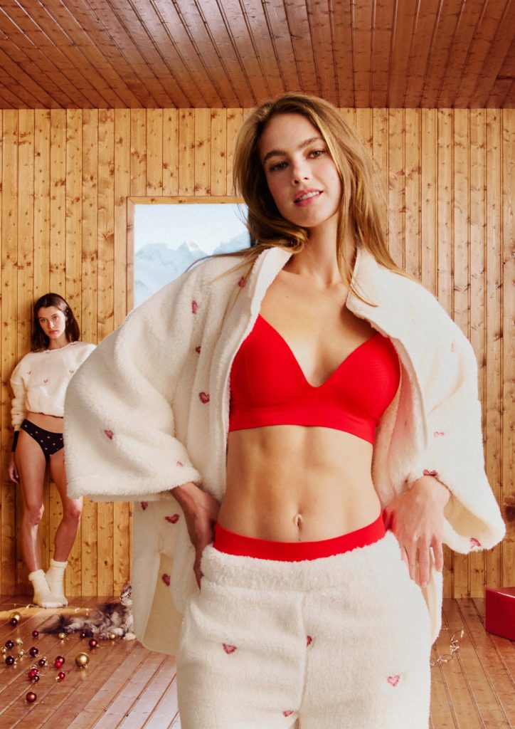 Pour les beaux présents à glisser sous le sapin : Etam célèbre les matières précieuses et sensuelles. La soie, douce et légère, se porte jour et nuit ; le cachemire, moelleux et lumineux, s’impose comme l’essentiel à garder longtemps. Des pièces à offrir ou à s’offrir, pensées pour durer et se transmettre.
