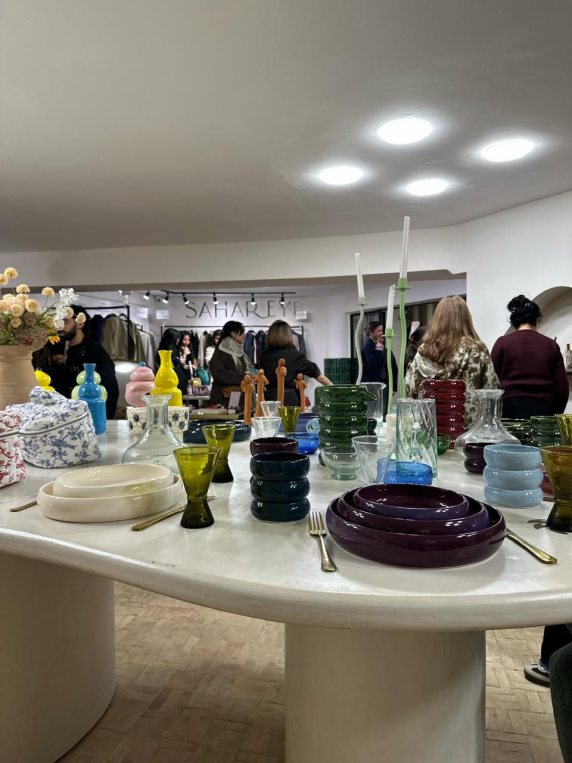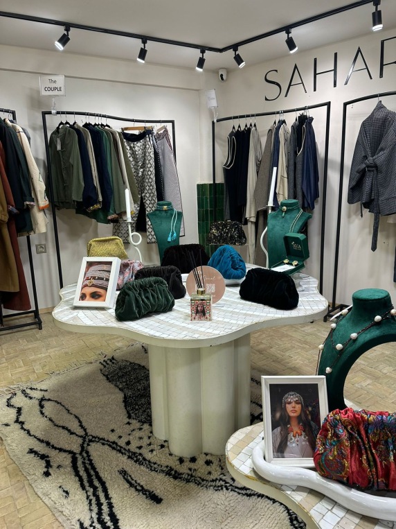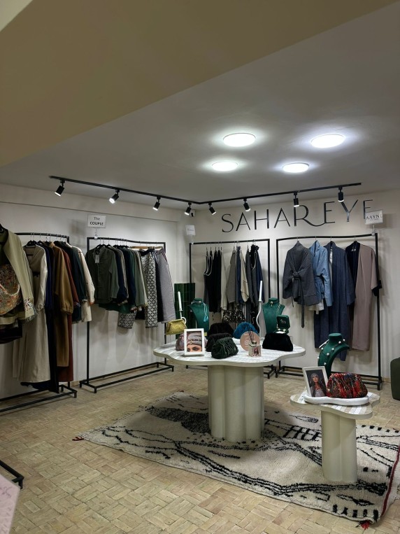 Quand la plateforme qui met en lumière les créatrices marocaines Sahareye rencontre l’univers raffiné de Beyt&Co, le résultat est un corner audacieux et inspirant. Sur les cintres défilent des pièces qui oscillent entre élégance contemporaine et artisanat local : les silhouettes poétiques et structurées de Mina Binebine, les créations sculpturales et raffinées d’Ikram Haidar, les tenues et broches délicates de Lune de Jour ou encore les pièces signatures d’Aayne. À cela s’ajoutent les propositions raffinées de RK Création, Leiyah et Ava Heritage. Lors du lancement, Maison Aouadi a enchanté les invités avec des tenues élégantes et sculpturales, parfaitement en harmonie avec l’univers mode et déco du pop‑up.