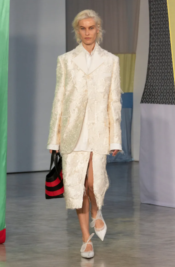 Le street style, véritable baromètre des tendances, a célébré une féminité sans fard : cheveux lâchés ou plaqués, boucles naturelles sublimées par des pinces rétro, lèvres framboise, blush appliqué au doigt. Une beauté du moment, sans filtre ni contrainte. Dans la rue comme sur les podiums, l’élégance ne se crie pas, elle se ressent. Un blazer oversize sur une robe en soie, des sandales plates bijoutées, un foulard noué à la ceinture. Les femmes racontent leur histoire à travers chaque pièce. Et c’est cette authenticité qui touche. Les jeunes créateurs ont brillé par leur audace et leur sincérité. Parmi eux, Diotima, Zankov ou encore Lii, offrent des collections hybrides, entre tradition et avant-garde. Leur point commun ? Un ancrage dans leur héritage culturel, et une volonté de s’adresser au monde avec franchise. Certaines maisons historiques, comme Proenza Schouler, amorcent une nouvelle ère. Sous la houlette de Rachel Scott, la marque réinvente ses codes avec justesse. Moins de frime, plus de sens.
