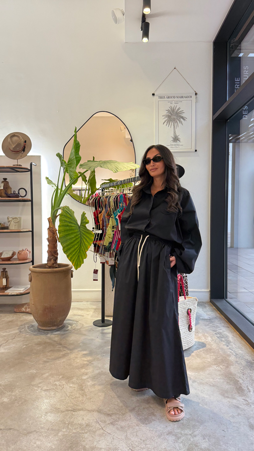 Un héritage précieux, devenu moteur créatif. « Nous avons créé The6Concept pour héberger les créations de nos sœurs puis les nôtres », expliquent-elles. Toutes ont tracé leur propre voie. Leur grande sœur lance la marque de vêtements Koolchee. L’une des plus jeunes fonde Qalbi, entre coupes classiques et accents marocains. Et la dernière se tourne vers la création de bijoux et créé la marque Tetem jewel. Des univers distincts, réunis par une même exigence : une élégance pensée, jamais décorative. Dans cette histoire de famille, Nadia et Hanane signent à leur tour une pièce devenue iconique : l’ensemble Tokyo. Une silhouette forte, minimaliste, immédiatement reconnaissable. « Il représente l’esprit The6Concept : minimalisme, qualité et personnalité affirmée », enchaînent-elles. « Une création capable de traverser les saisons, de parler à différentes cultures et d’incarner notre identité. » Tokyo devient une signature, une allure, presque un manifeste.
